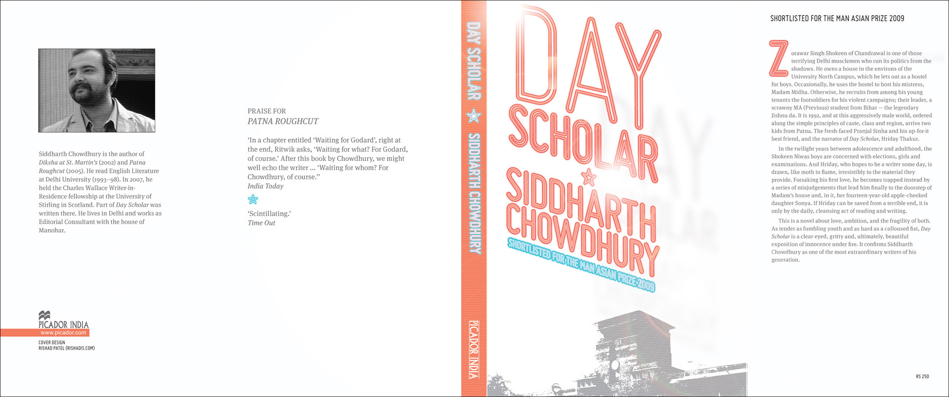 Book cover design for Day Scholar, a novel by Siddharth Chowdhury published by Picador.